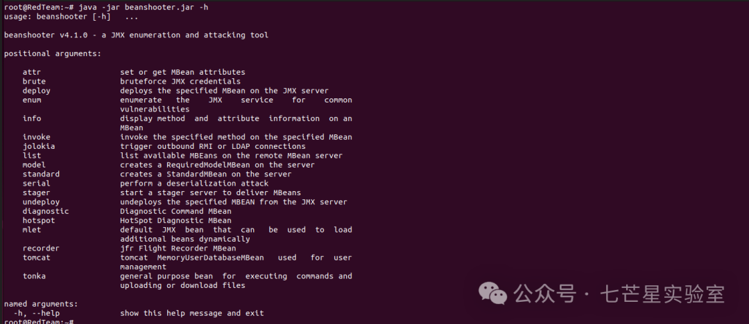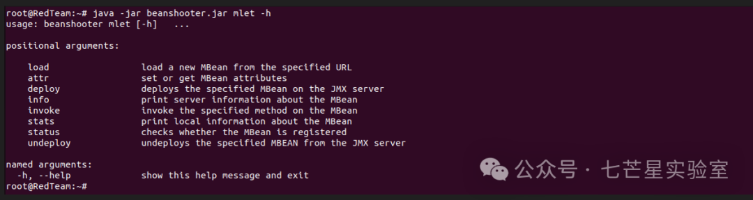 MBean操作与针对JMX端点所暴露的通用功能的基本操作相比则是针对特定的MBean,Beanshooter对于每个支持的MBean都提供了另一个子解析器,其中包含相应MBean的可用操作和选项,以下列表展示了mlet MBean及其关联子解析器的示例: