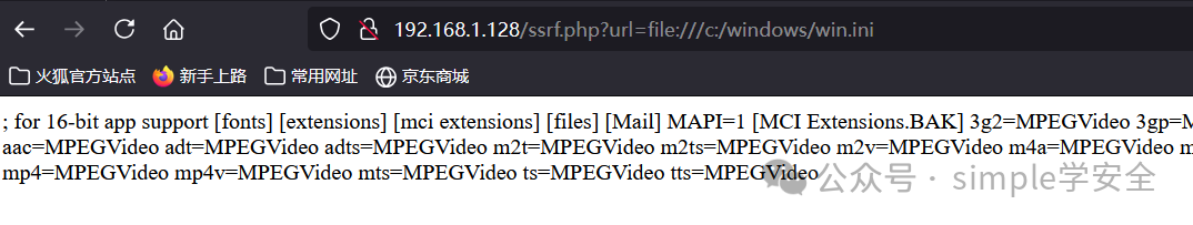 现有 http://192.168.1.128/ssrf.php?url= 存在SSRF漏洞,可利用file协议读取本地文件: