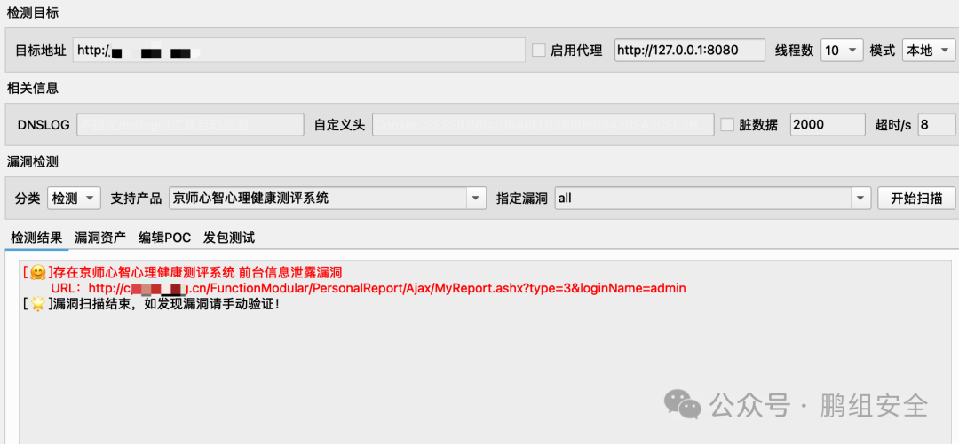 4、需要使用dnslog检测的漏洞可以使用 {{dnslog}} 替换,工具支持自动替换并检测结果。