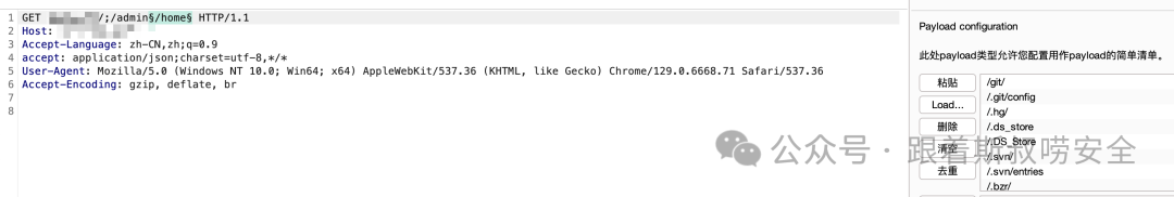 但是光是这个漏洞还不够呀,不得行啊,不能辅助rce这就是个垃圾洞,看看还能不能继续深入。翻了一下home页面加载的js文件,没啥能利用的接口呀,那咋办?没啥好办法,只能使用fuzz大法了,burp导入密码本,开扫!