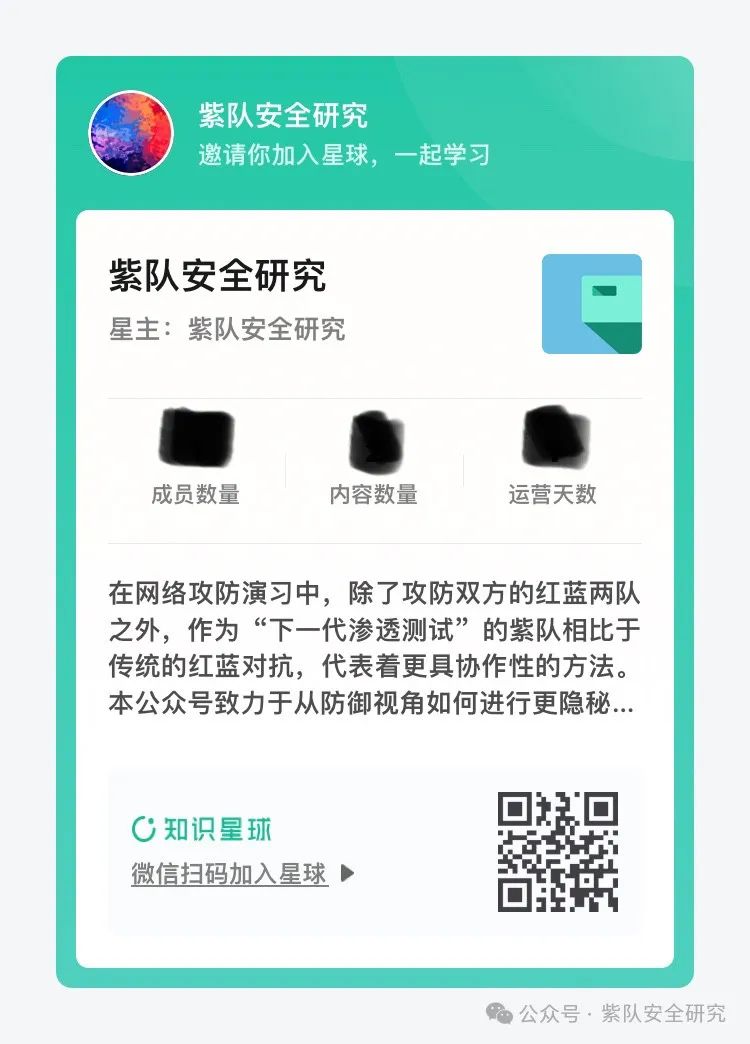大家好,我是紫队安全研究。建议大家把公众号“紫队安全研究”设为星标,否则可能就无法及时看到啦!因为公众号只对常读和星标的公众号才能大图推送。操作方法:先点击上面的“紫队安全研究”,然后点击右上角的【…】,然后点击【设为星标】即可。
