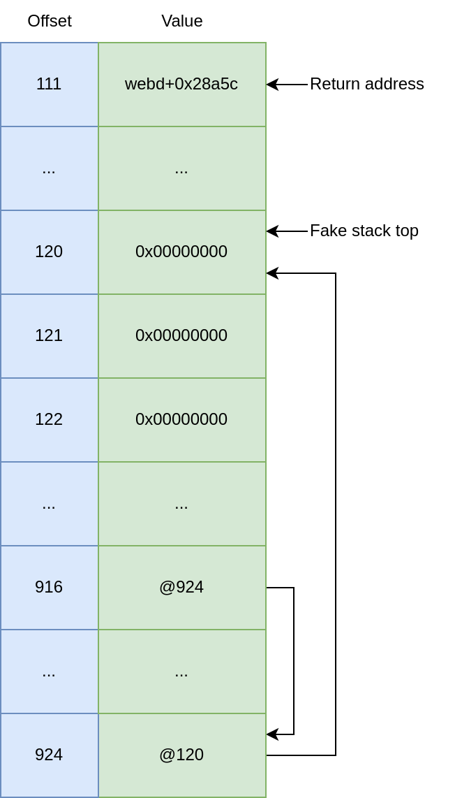 """        Make our controlled stack pointer at offset 924 pointing to our fake stack at a given offset.        """