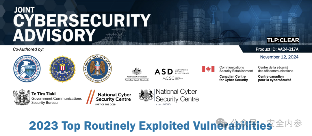 五眼联盟国家的网络安全机构联合发布报告,公布了2023年最常被利用的漏洞清单,其中Top 15漏洞中有12个为年内披露并修复,这与前几年的态势已经完全不同。