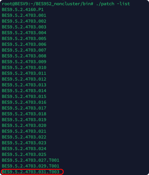 宝兰德BES系统的补丁也不是向下覆盖的,不能单看当前补丁号比安全补丁号大就判定安全。而是通过 “./patch -list” 查看上述安全补丁是否安装成功。