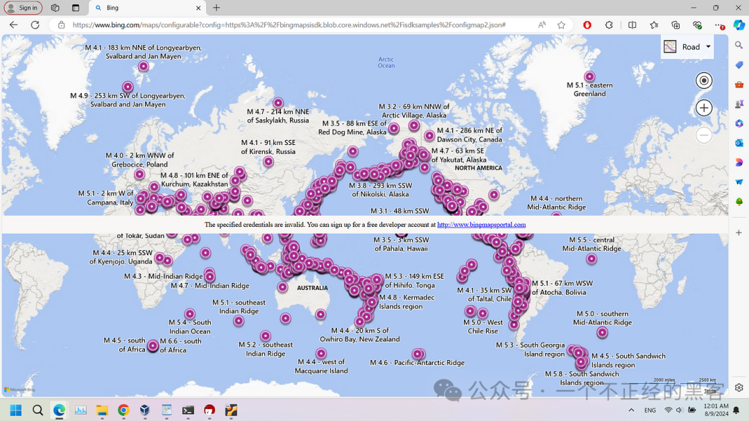 为了演示攻击者如何在 www.bing.com 的上下文中渲染恶意地图,我需要设置一个服务器来托管以下两个文件: