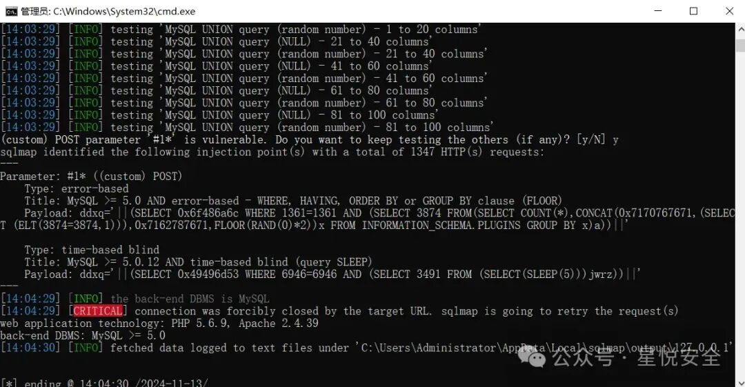 Python sqlmap.py -r a.txt –level=3 –dbms=mysql