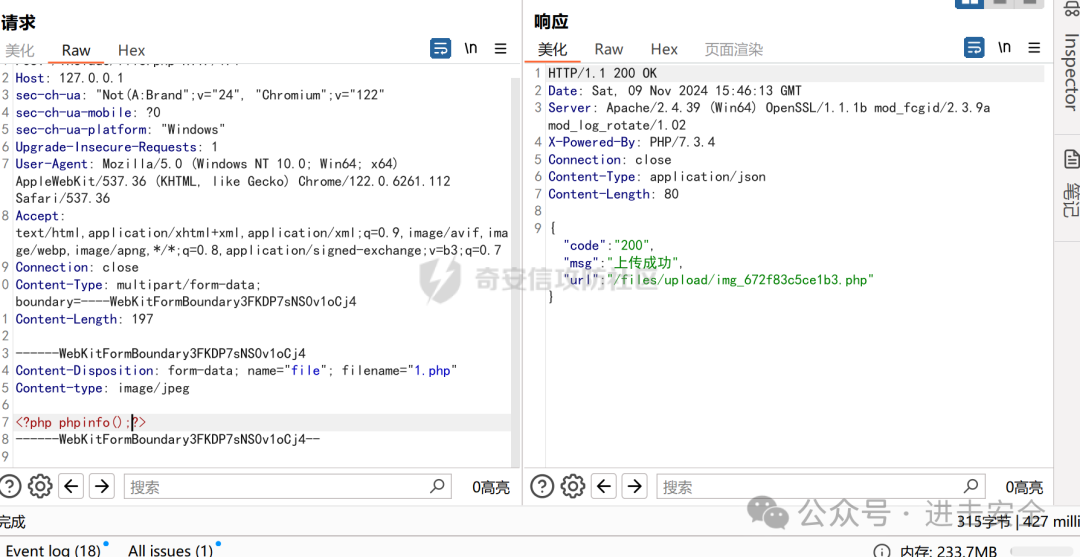 这里发现获取到后缀之后最终会判断MIME,并不会直接退出,所以我们只要MIME为数组当中的值即可,尝试验证一下。