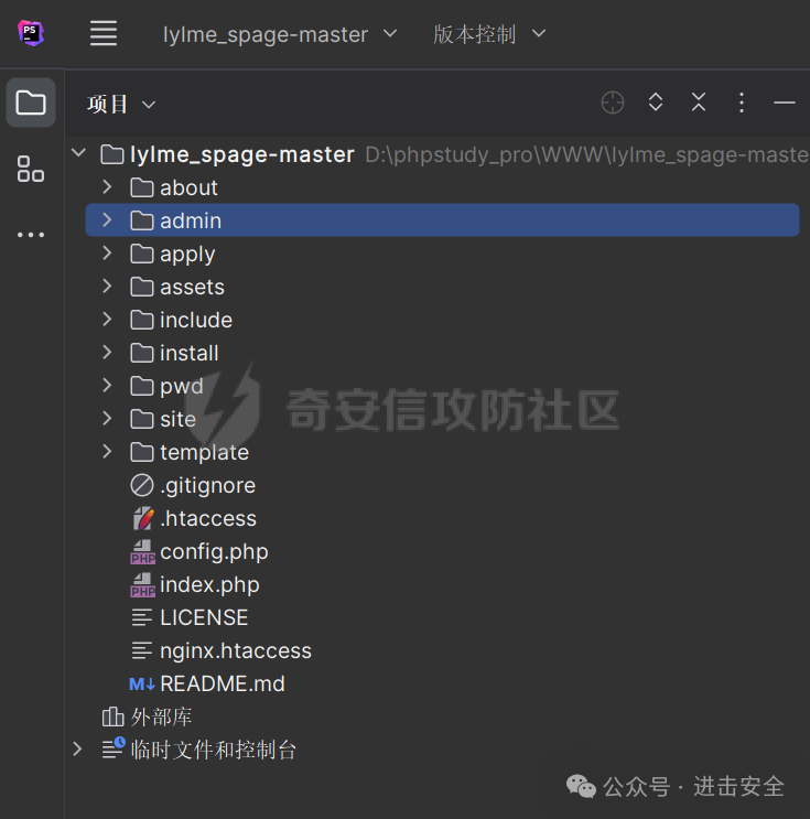 光看代码的目录结构,大致可以猜到,admin目录下的文件肯定是需要后台登录之后才可以进行触发,这里我们先看看在后台登录的逻辑在哪里。这里说一个小技巧:可以搭建起来网站之后通过数据包定位代码