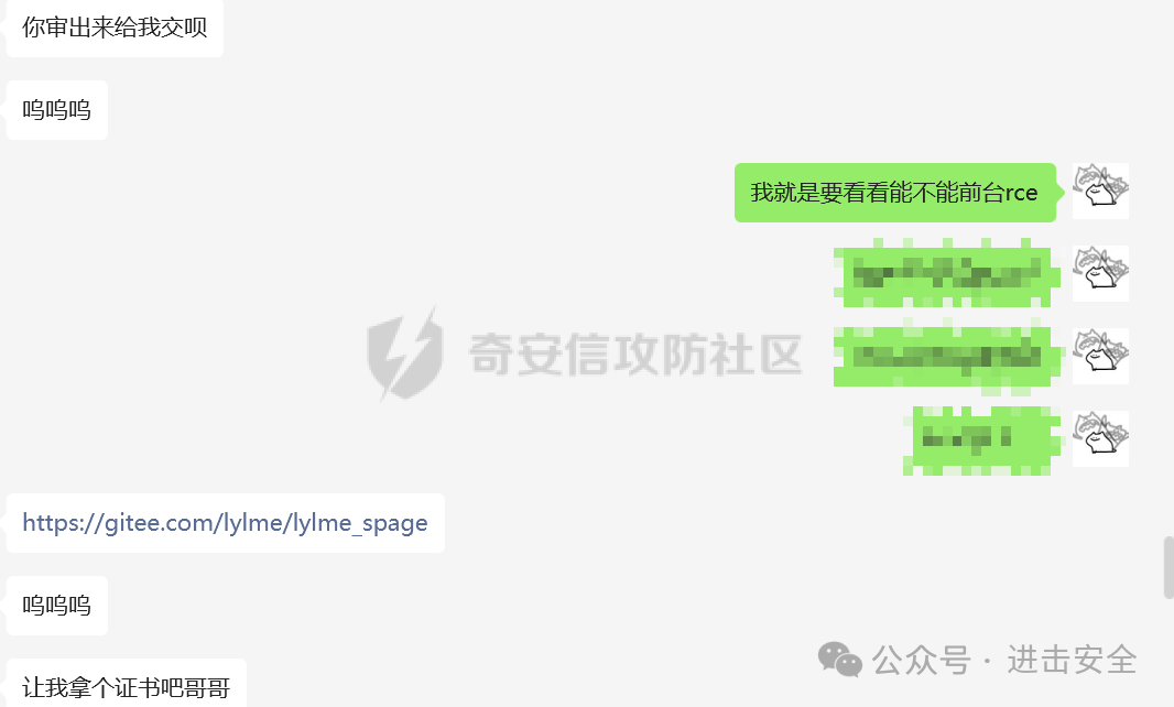 正当我兴致勃勃的找这个师傅装* 的时候,把这个漏洞详细发给了这个师傅,这个师傅没回复我别的,只回复了我几个字符。
