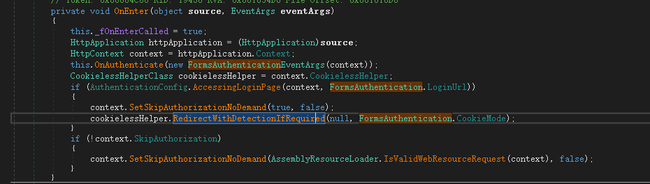 第一层是使用了.NET中的一个 HTTP 模块FormsAuthenticationModule方法,它的主要作用是管理用户的身份验证过程,包括用户登录、身份验证票据管理、重定向到登录页面等。在处理主要逻辑的OnEnter方法中