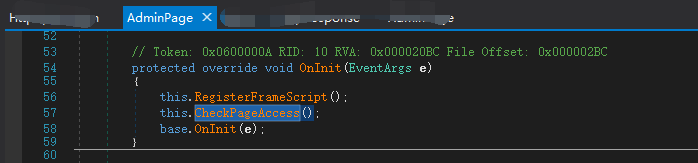 第二层鉴权方式在AdminPage类中,是该系统自己实现的方法,执行类的时候需要继承该类,首先查看OnInit方法,它在页面初始化阶段被调用,用于执行初始化工作。
