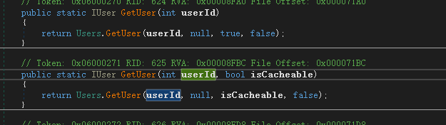 IUser GetUser(int userId)和GetUser(int userId, bool isCacheable),会通过userId获取