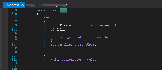 从上面两个鉴权方式我们还发现Iuser user的获取方式也有两种,一种是通过HiContext.Current.User方式获取当前user对象,另一种是通过Users.GetUser的方式获取user对象,事实上我们查看HiContext.Current.User方法,他也是通过Users.GetUser方法获取的。那么我们就主要来看看Users.GetUser方法