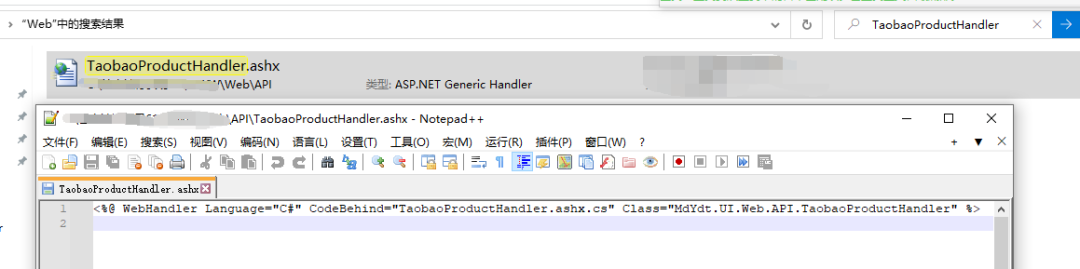 同时该方法属于TaobaoProductHandler,我们在文件中寻找是否有该字样,发现对应的ashx文件。由于该ashx文件时位于API目录下,并且没有继承于Adminpage所以该方法不需要鉴权。