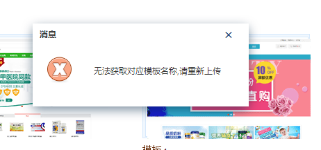 在页面选择文件上传后依然会出现问题,提示无法获取对应模板名称