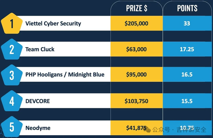 Smoking Barrels 团队发现了 TrueNAS X 中的两个漏洞。尽管其中一个漏洞已经被利用,但成功利用该团队仍获得了 20,000 美元和 2 个 Pwn 大师积分。 Cluck 团队利用一系列六个漏洞从 QNAP QHora-322 设备迁移到 Lexmark CX331adwe。尽管其中一种易受攻击的元素之前已被使用过,但参与者仍赚取了 23,000 美元并获得了 Pwn 大师积分。 Viettel 的专家网络安全部门演示了利用两个漏洞对 TrueNAS Mini X 进行的攻击。他们的链还利用了之前在比赛中发现的漏洞,但他们因演示攻击而获得了 20,000 美元和 2 个 Pwn 大师积分。 PHP Hooligans / Midnight Blue 利用整数溢出漏洞成功利用了 Lexmark 打印机,获得了 10,000 美元和 2 个 Master of Pwn 积分。