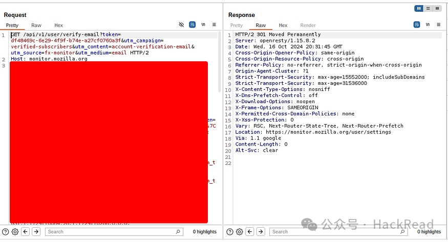 我能够抓取到验证令牌,并将其用于验证电子邮件端点来确认电子邮件。现在,由于这个配置错误,我可以轻松地监控任何我想要的电子邮件,而不需要电子邮件所有者的权限 :))