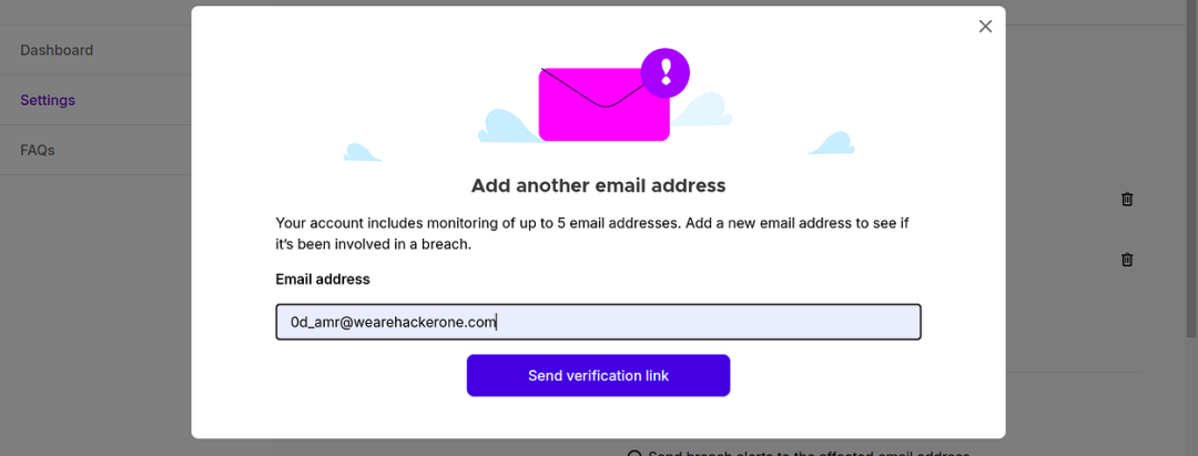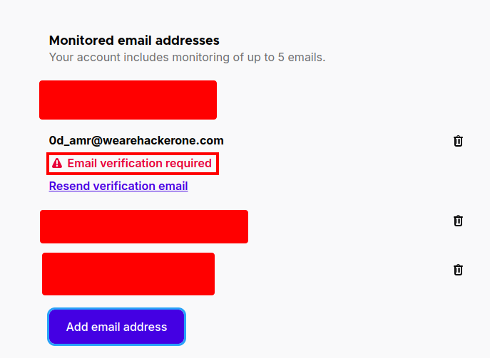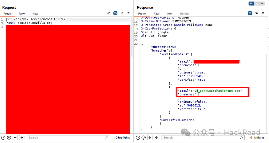我很幸运地发现了一个可以检索账户中所有添加邮箱的接口 /api/v1/user/breaches,同时还可以获取每个已验证邮箱关联的数据泄露信息。这是一个绝妙的发现!现在,让我们进一步探索它的功能,以便更好地理解。
