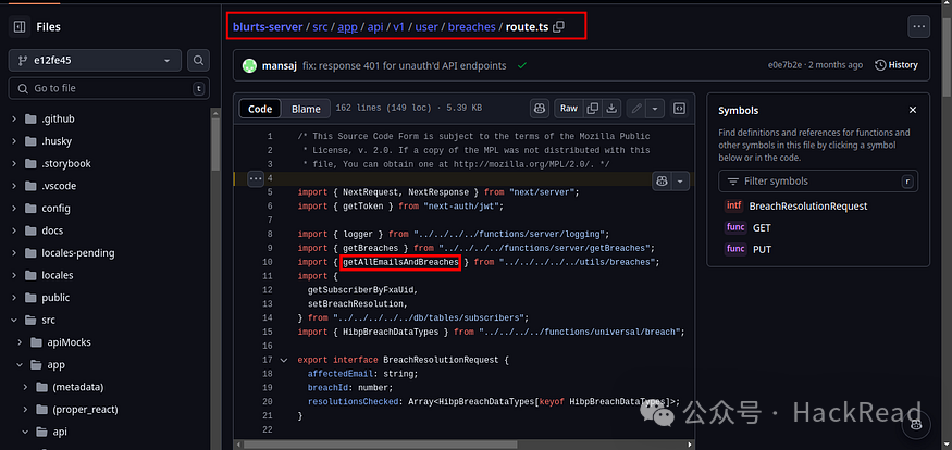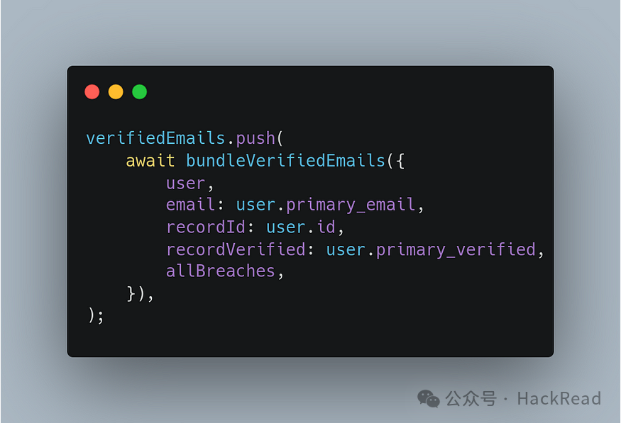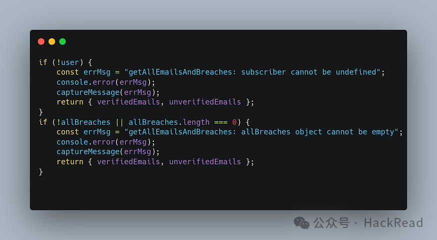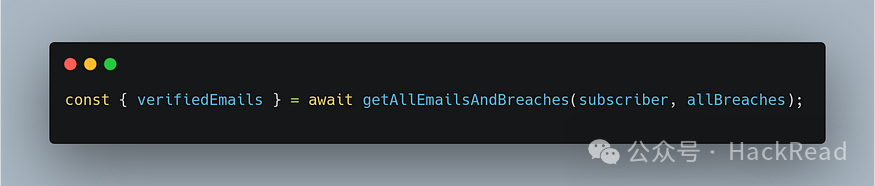 通过搜索 getAllEmailsAndBreaches 函数,我发现该函数不仅检索已验证邮箱的数据,还会返回未验证邮箱的信息。