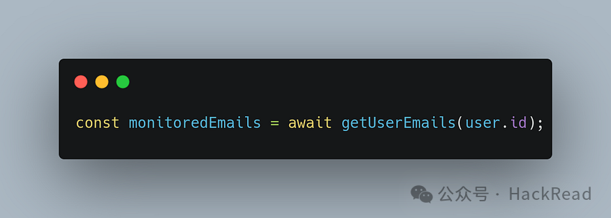 这一行调用 getUserEmails 函数,从数据库中获取与用户关联的所有电子邮件地址。需要注意的是,这可能包括已验证和未验证的电子邮件 :))