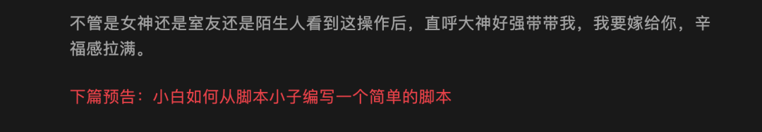 ,上上篇文章的预告小白如何从脚本小子编写一个简单的脚本拖到现在,终于有时间来更新了。