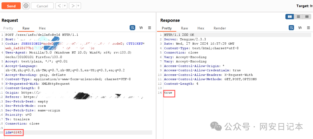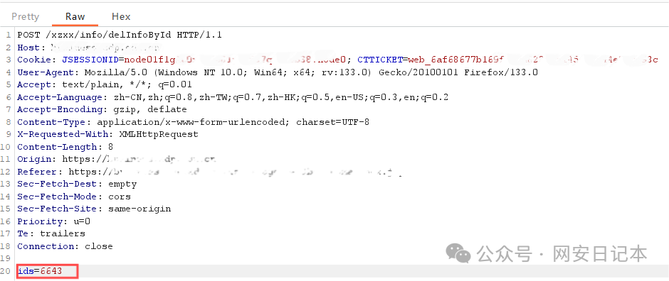 ” 功能的时候,我进行抓包,发现了一个有意思的参数。在这个POST请求包里面只存在一个参数—— ids