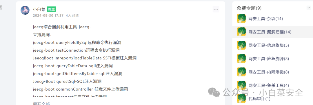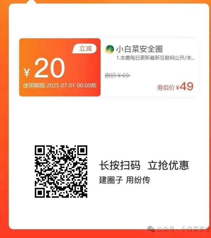 更多漏洞poc(0day漏洞)、安全工具、批量脚本加入内部圈子获取,目前只要49,无理由3天退款,加入圈子请扫描下方二维码。