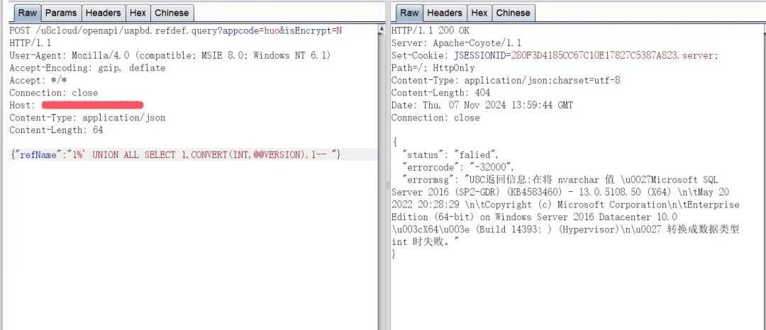 用友U8 Cloud uapbd.refdef.query接口存在SQL注入漏洞 附POC