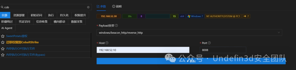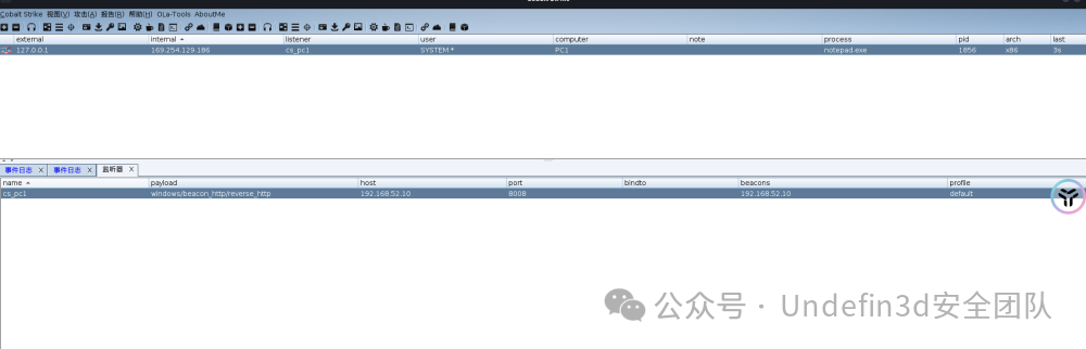 然后我们就可以开启cs的去监听8008端口,viper直接已将转cs,就可以上线cs了