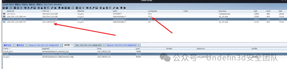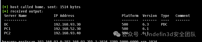 上线cs后我们进行端口的扫描,我们发现93段的ip,我们直接进行探测,然后发现DC的ip是192.168.93.30,和pc2的ip