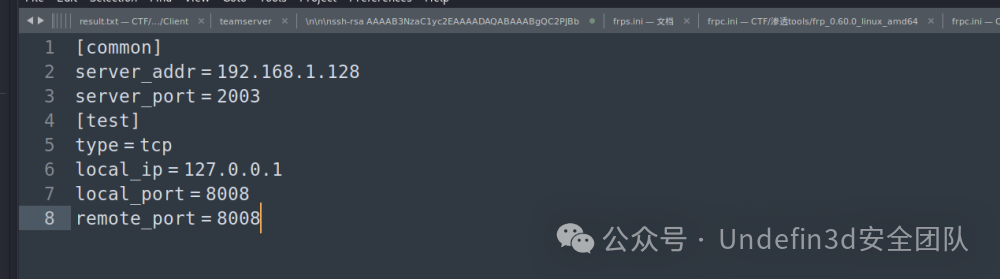 然后添加路由,但是我们发现上传的fscan没法运行,然后又是一台windows的系统,我们直接转cs上线,但是cs上线需要把我们的本地的端口转发到靶机里面,这样我们就可以监听到pc了,我们frp进行内网穿透,我们将第一台靶机设为我们的服务端,本地为客户端,这样就可以了