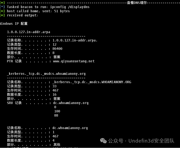 然后通过 shell ipconfig /displaydns 来查看域名