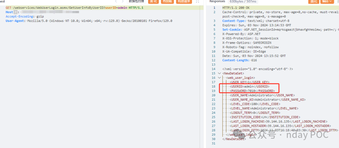 英飞达医学影像存档与通信系统 WebUserLogin.asmx 接口存在信息泄露漏洞,未经身份攻击者可通过该漏洞获取系统后台管理员账户密码信息,登录后台,导致系统处于极不安全的状态。