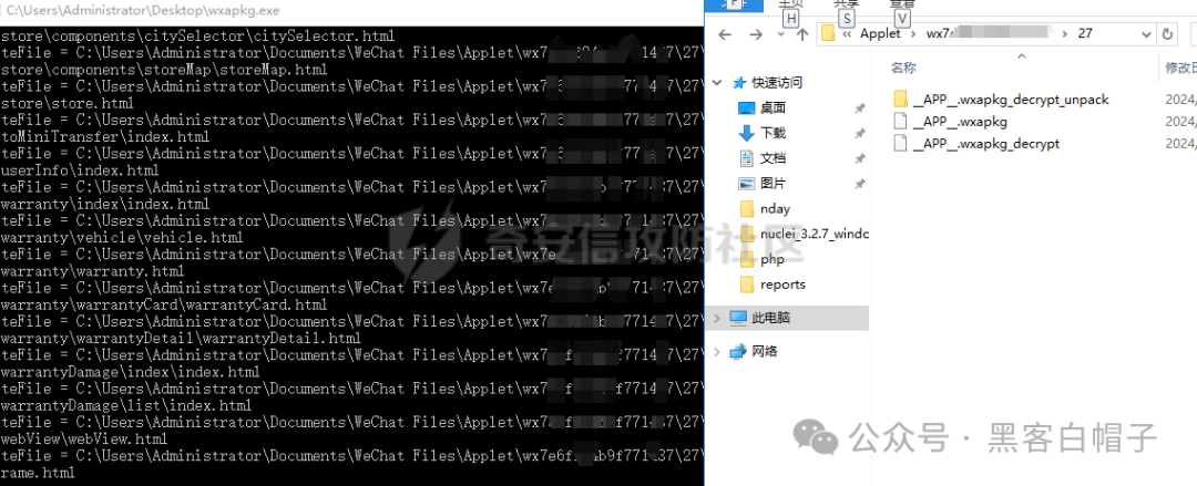 会看到一个__APP__.wxapkg,这个就是小程序的打包程序,需要对该文件进行解密,即可获取到小程序源码,解密脚本我使用的是https://github.com/zhuweiyou/wxapkg直接把文件拖到exe程序的图标上便可以自动解密