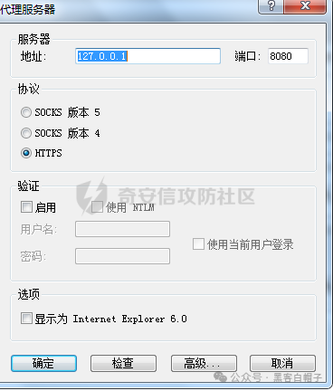 在peoxifier中新建代理服务器,ip和端口对应burp的监听端口,协议选择https