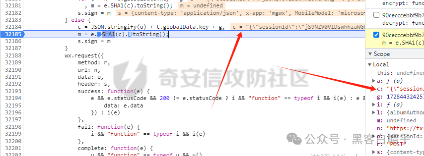 这样再往上去找函数调用的话不如动态调试来的方便,于是在32185行打上断点