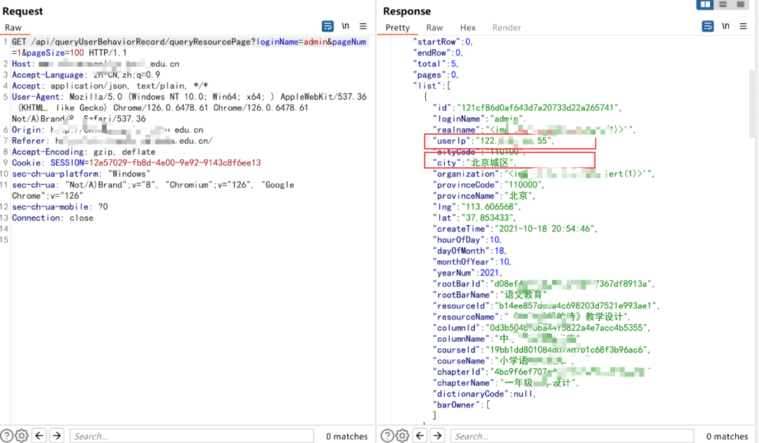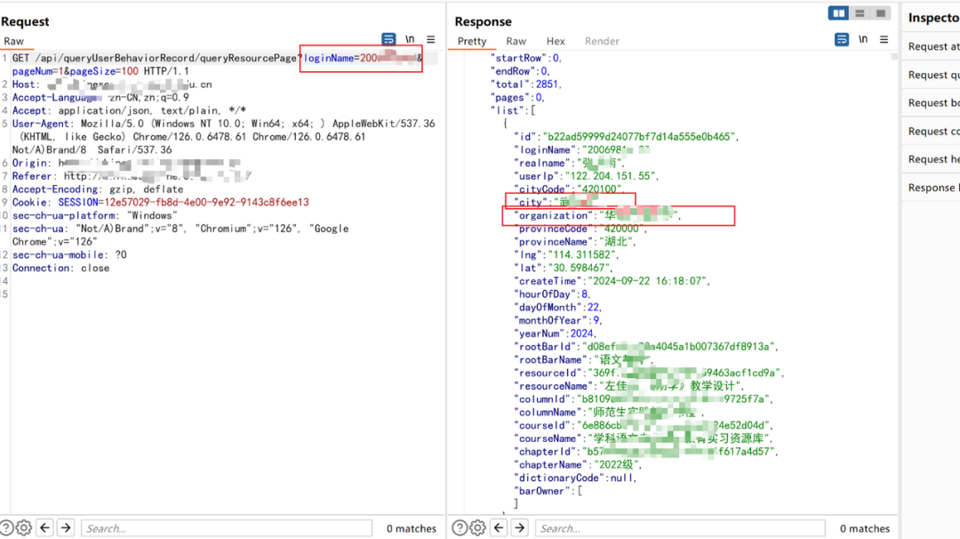 继续往下看的时候,发现泄露类似这个学校的教师工号 通过历史数据包中找到,这个用户名的查询接口,发现返回的信息确实是这个学校的