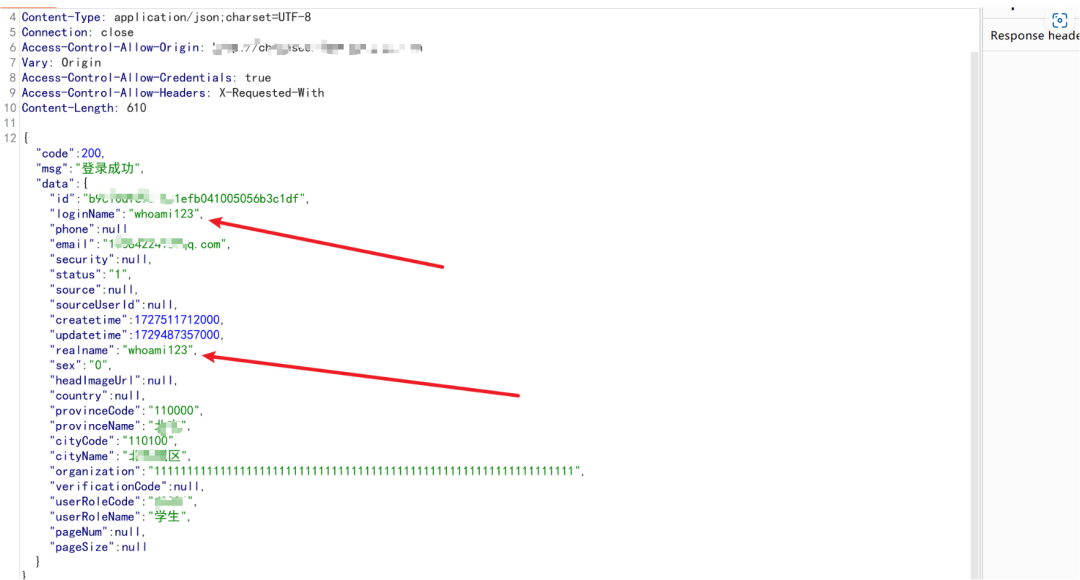 有几个参数需要注意 loginName,realname,userRoleCode是否可以通过修改这些参数,调用一些接口返回一些敏感信息呢?大胆猜测,小心尝试