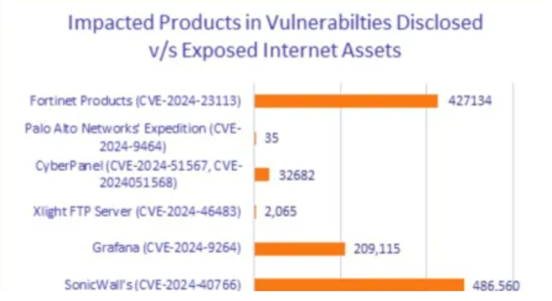 根据 Cyble 最新发布的漏洞报告,有近100 万台存在被积极利用漏洞的 Fortinet 和 SonicWall 设备正暴露在公开的互联网上。这些漏洞包括 FortiManager、FortiOS、SonicWall 设备和 CyberPanel 等。