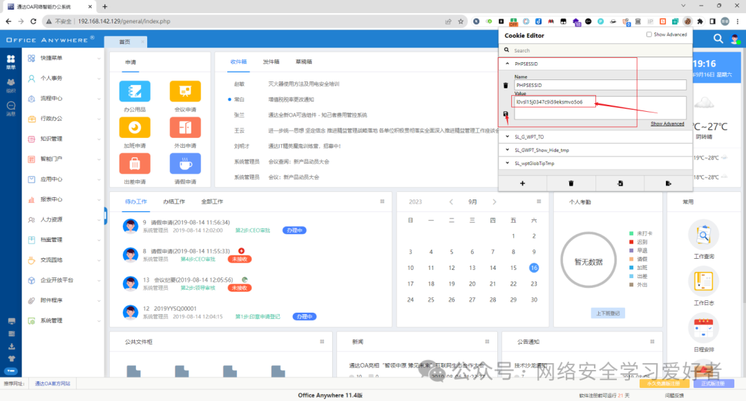 修改cookie中PHPSESSID的值并刷新页面就会发现登录成功了