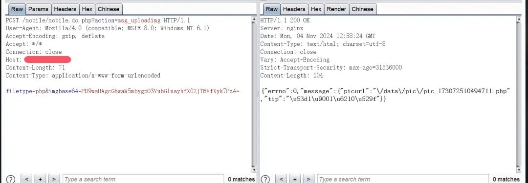 漏洞链接:https://xx.xx.xx.xx/mobile/mobile.do.php?action=msg_uploadimg