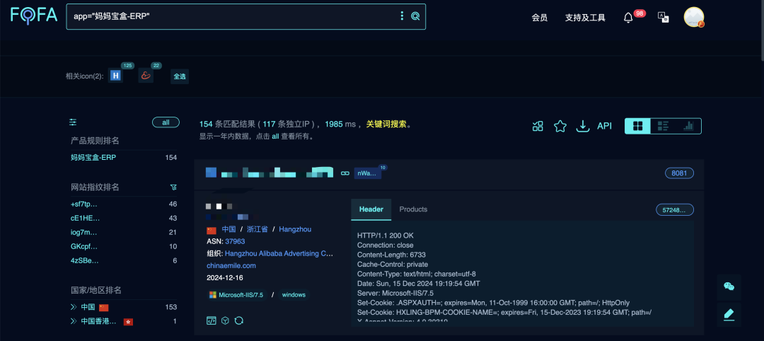 Fofa语法:app="妈妈宝盒-ERP"