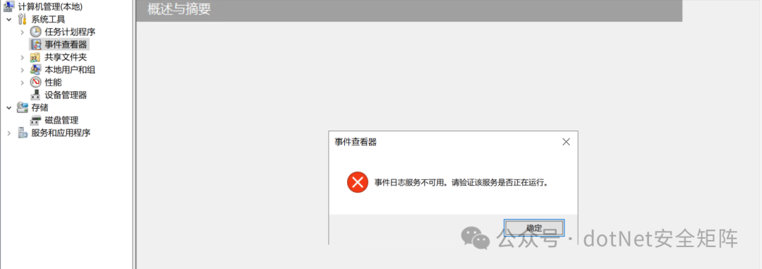 运行此命令后,系统会即刻停止事件日志服务,无法再记录任何新的日志。如下图所示。