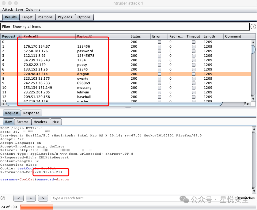 如上图,实现每次爆破都使用不同的伪ip进行,避免被ban