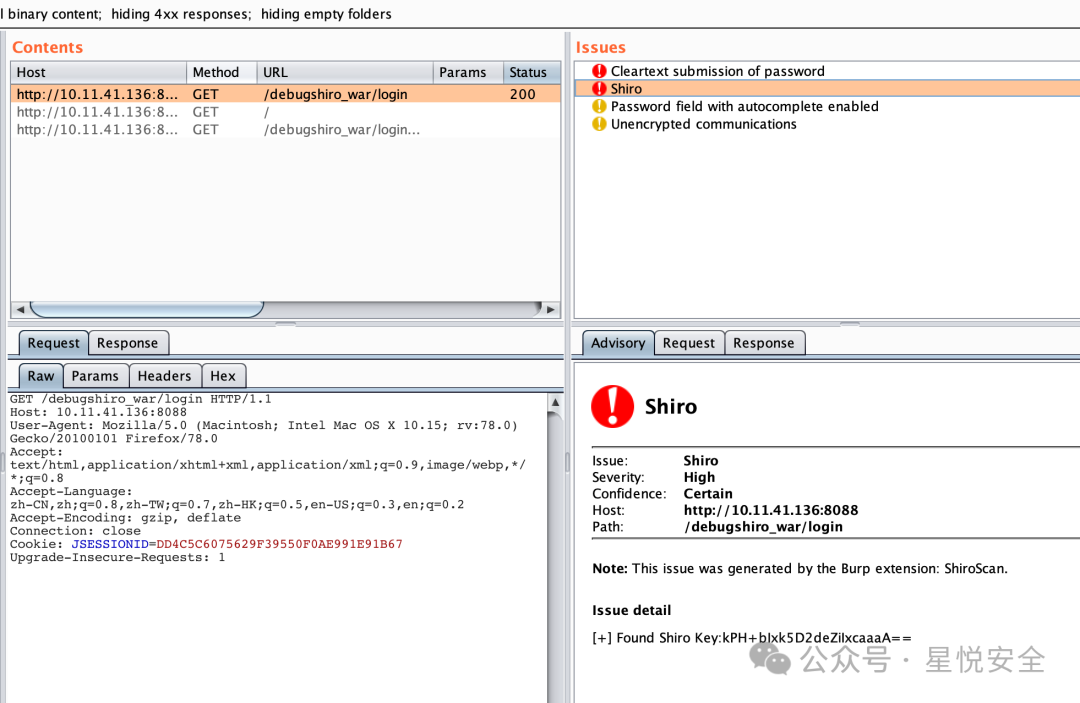 将ShiroScan.jar导入burp,该插件是被动扫描,扫描成功的结果会输出到图形界面中
