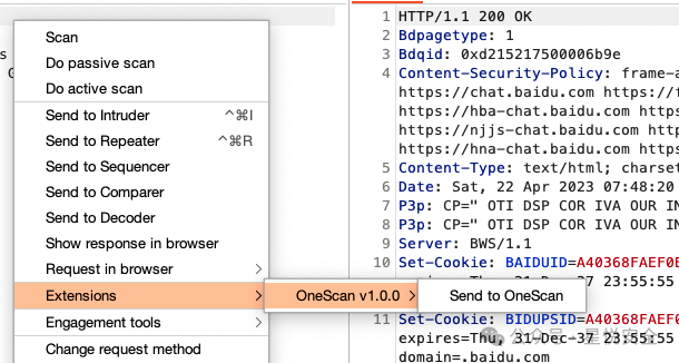 可以从BurpSuite其它位置发送到OneScan主动扫描