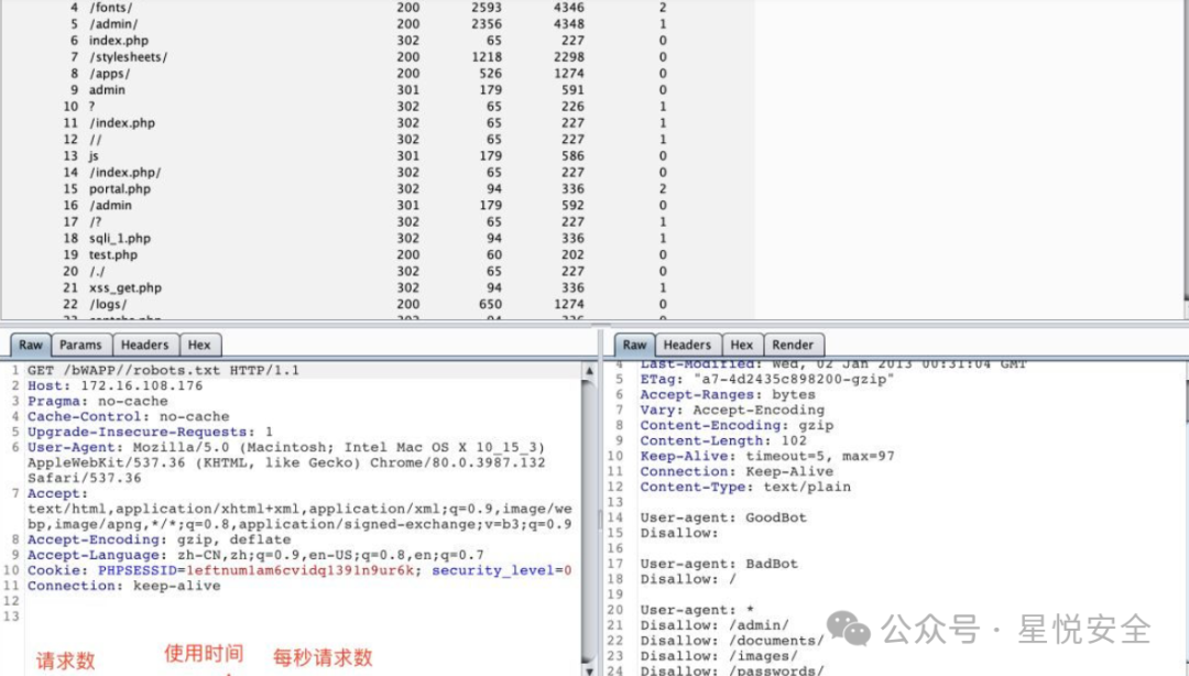 点击其中的一条请求,可以看到之前 %s 的地方已经被字典的内容替换了,上图中替换的内容是 /robots.txt
